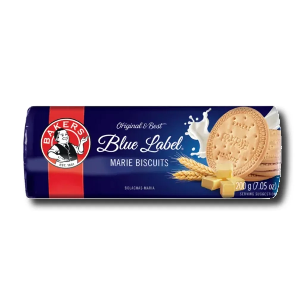 Bakers Blue Label Marie Biscuits are classic, light‑and‑crispy tea biscuits beloved for generations. With a delicate snap and subtly sweet, buttery flavor, they’re perfect for dunking in tea or coffee, as a standalone snack, or crushed into dessert bases like cheesecake and tarts.