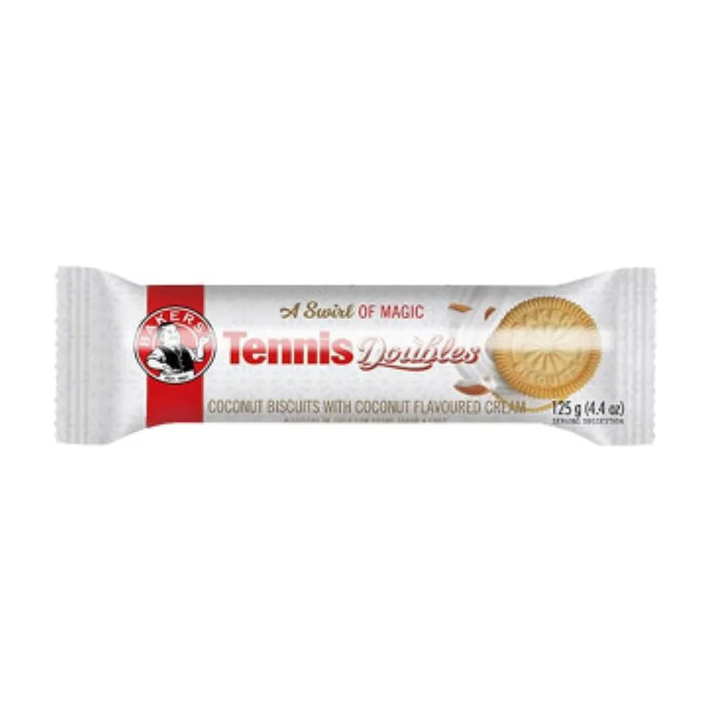 A classic treat with a fun twist! Bakers Tennis Doubles are soft, chewy biscuits filled with a creamy center, perfect for snacking anytime. Deliciously simple and irresistibly tasty.