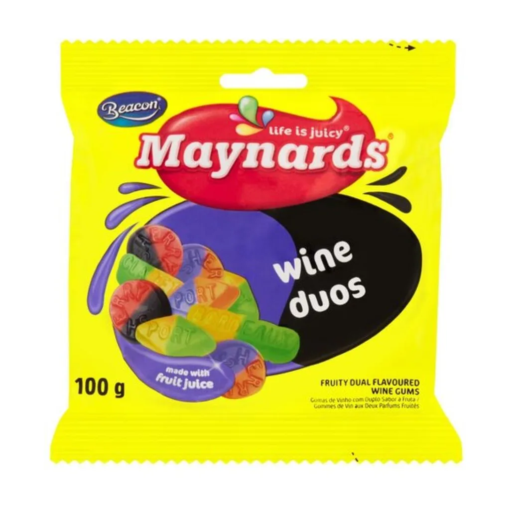 Twice the flavor in every bite! Maynards Sweet Wine Duos combine two fruity tastes in one delicious, chewy treat. A fun twist on the classic wine gum—perfect for sharing or enjoying on the go.