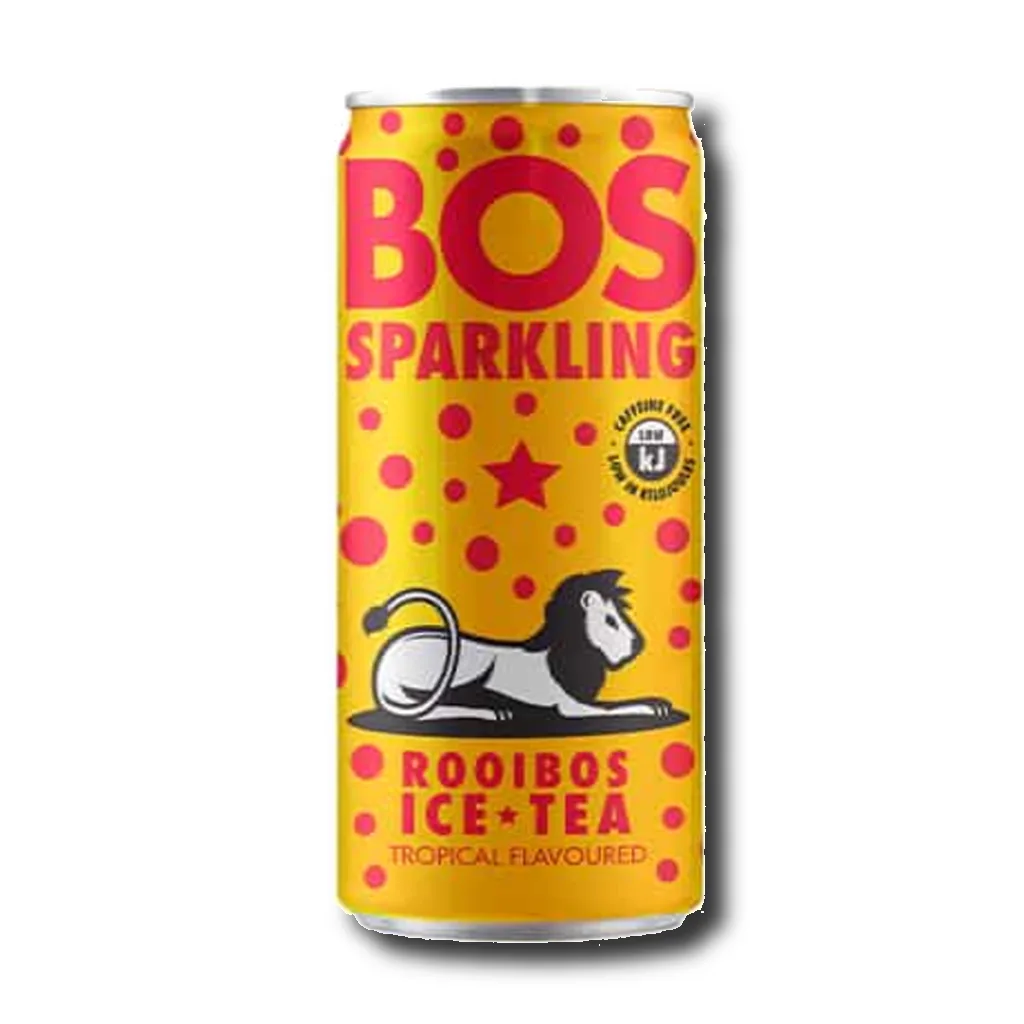 BOS Rooibos Iced Tea Tropical Sparkling is a vibrant, fizzy blend of organic rooibos and exotic tropical fruit flavors. Naturally caffeine-free and refreshingly crisp, it’s a taste of summer in every sip.