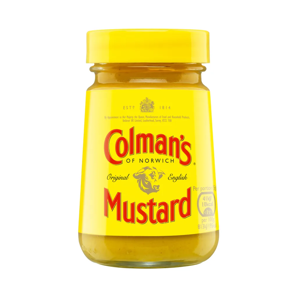 A bold and fiery mustard made from a blend of brown and white mustard seeds. Colman’s has been the iconic British mustard brand since 1814, delivering a distinctive heat that enhances meats, sandwiches, sauces, and dressings. Known for its bright yellow packaging and unmistakable punch, it’s a pantry essential for those who love strong flavor.