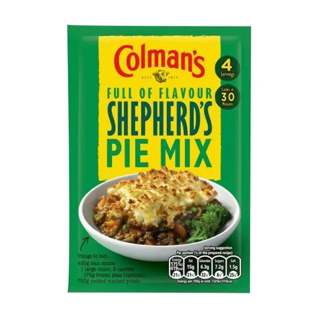 Bring authentic British comfort food to your kitchen with Colman’s Shepherd’s Pie Mix. This seasoning blend combines onions, sage, and a medley of herbs to help you create a hearty, flavorful shepherd’s pie with ease. Simply add minced meat, vegetables, and mashed potatoes for a traditional dish the whole family will enjoy.