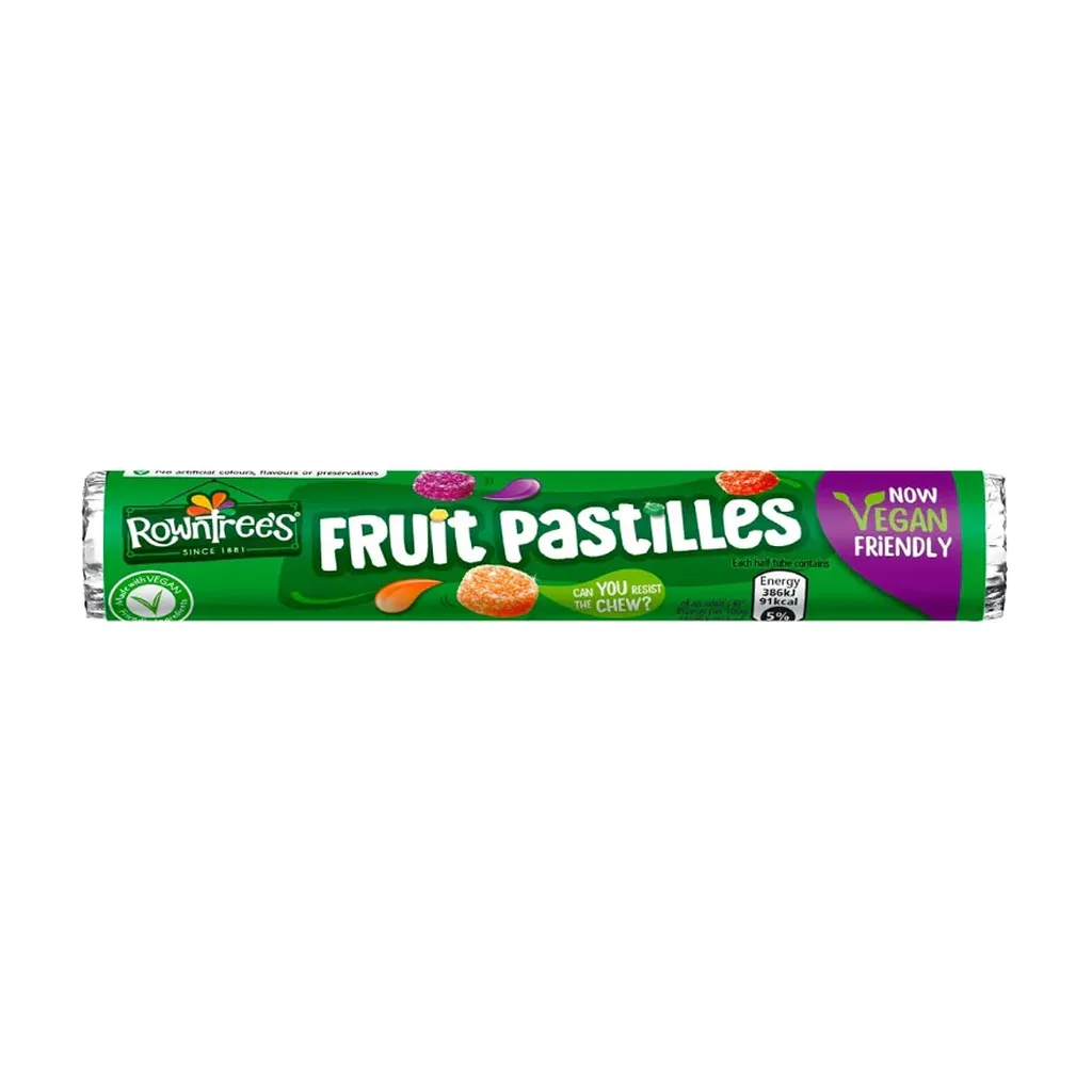 A beloved British classic since 1881, Rowntree’s Fruit Pastilles are chewy, sugar‑coated sweets bursting with fruity flavor. Each roll contains an assortment of lemon, lime, strawberry, orange, and blackcurrant pastilles, all made with real fruit juice. Now vegan‑friendly, these colorful candies are free from artificial flavors and colors, offering a nostalgic treat that’s as popular today as ever.